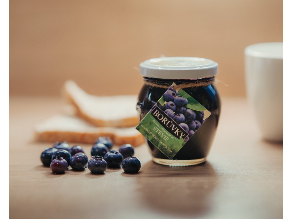 Blueberry Jam Sweetened with Stevia – No Added Sugar. Carefully crafted with love according to traditional family recipes. Naturally sweetened with stevia – no added sugar, no preservatives.